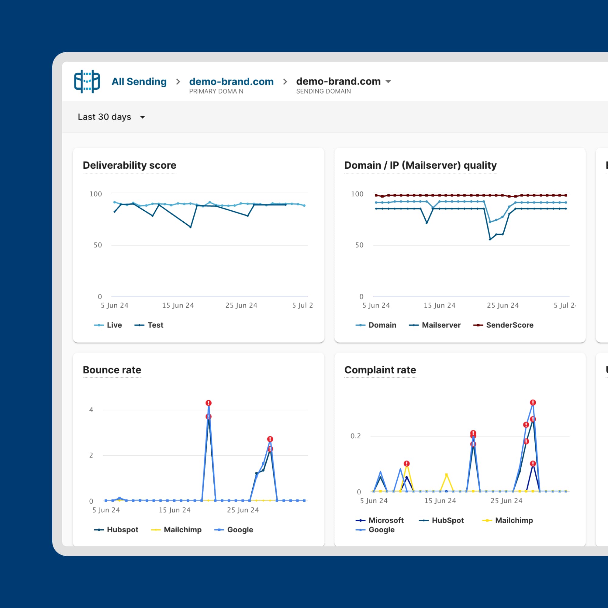 See where your emails are being delivered to at Gmail, Outlook, and other common providers.
