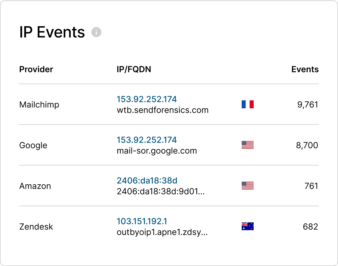Analyze potential threats and dig into SPF, DKIM, and IP events.