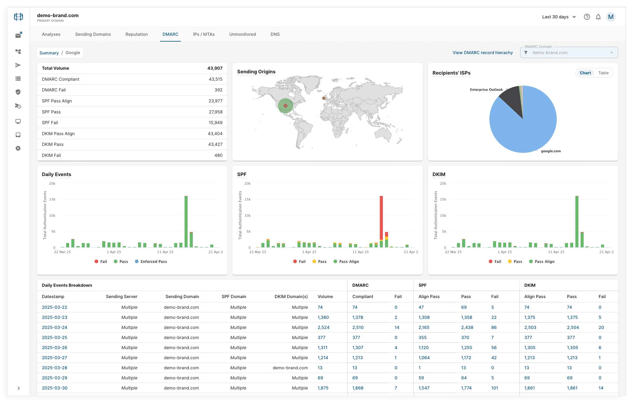 Whether your organization sends thousands or tens of millions of messages a month, we've got you covered. A complete re-working of the DMARC forensics module yields the fastest route to compliance and enforcement across your entire brand. Check out the updated usage guides in our Knowledgebase.